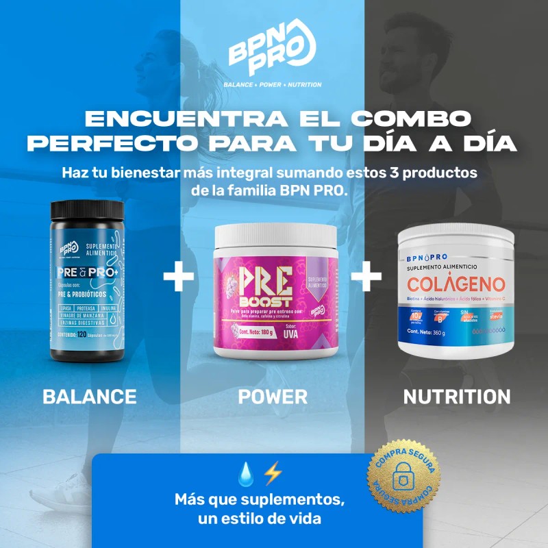 - Opción práctica para personas activas o con rutinas demandantes. Componentes principales: