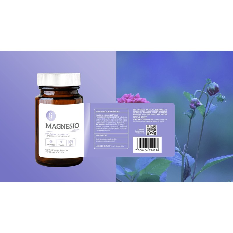 Magnesio Goltee. 60 cápsulas de 450mg cada una.