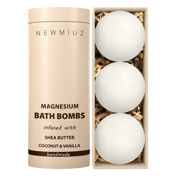Magnesium Bath Bombs Post Workout Recovery Sore Muscles Tension Epsom Salt Bath Infused with Vanilla SheaButter Coconut Perfect Stocking Stuffers Gift