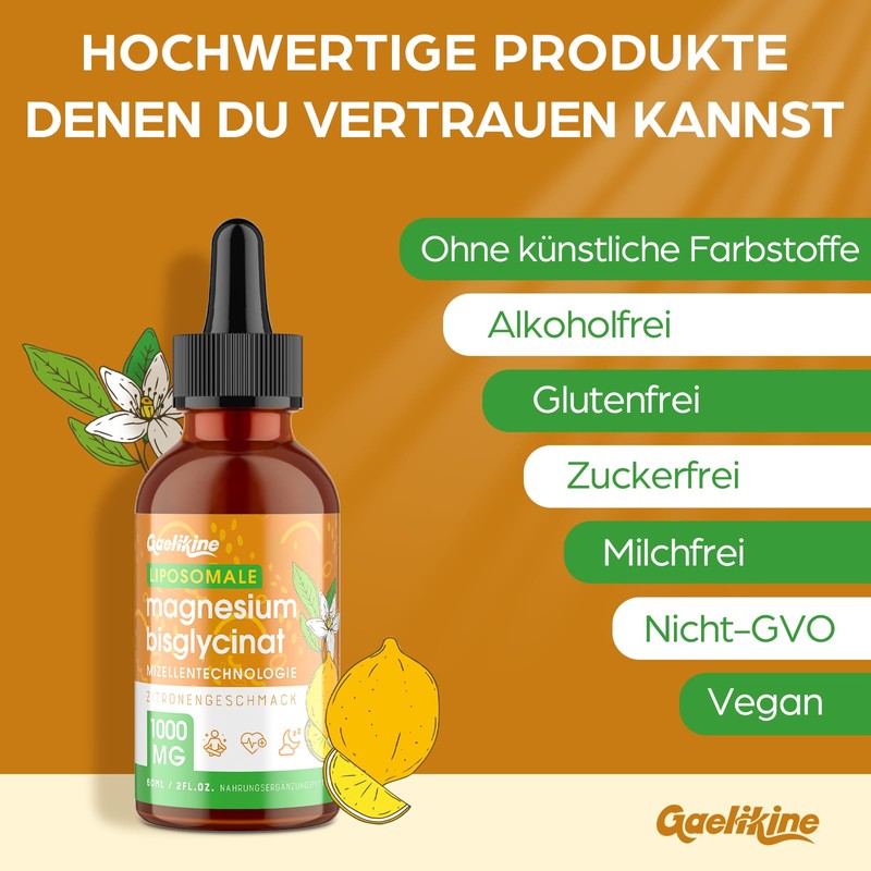 - A Potent Magnesium Formula Gaelikine has developed a potent and pure magnesium bisglycinate supplement in liquid form. Each serving contains 1000 mg of magnesium bisglycinate, which provides 140 mg of elemental magnesium. Our magnesium drops are incredibly versatile and perfect for any way of life - whether at home, at work or on the go.