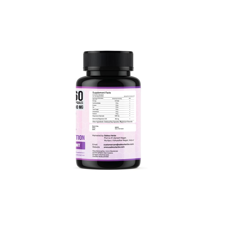 Magnesium Glycinate 1600mg per Serving High Absorption, Pure and Potent - 60 Capsules