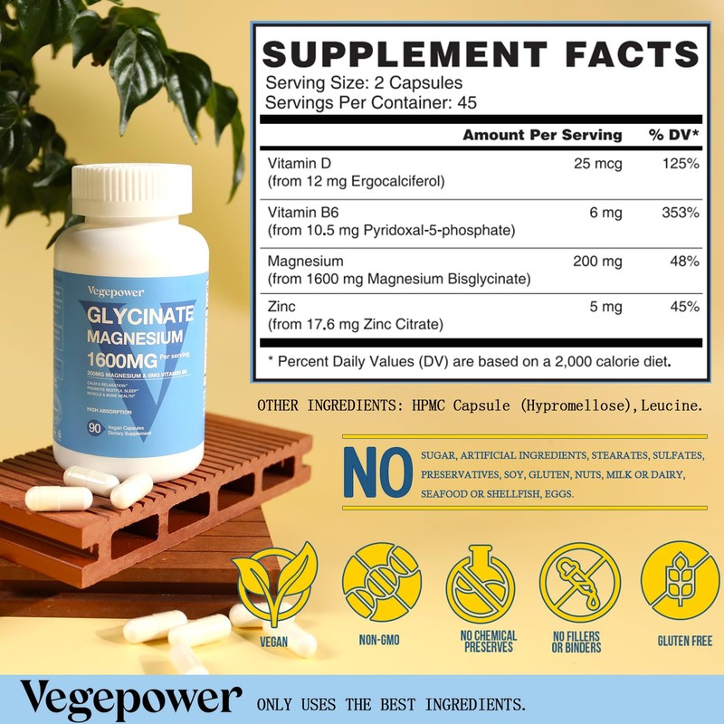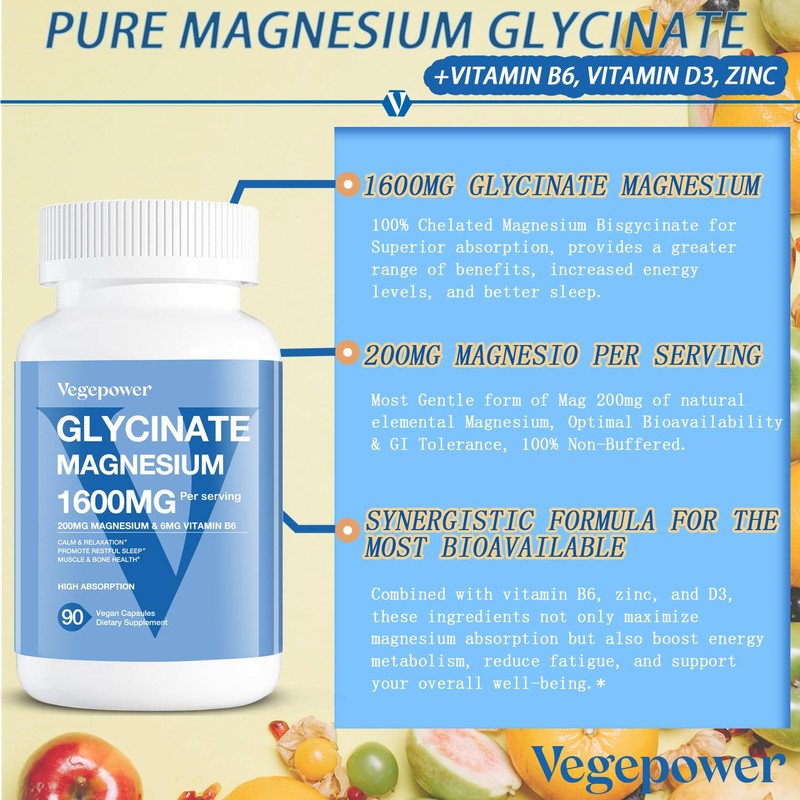 - 💯【Trusted GUARANTEE & BRAND】- Vegepower believes in the power of nature! As a trusted and nature-friendly brand, all our materials come from Vegan sources and nature. Vegepower Magnesium Glycinate supplements are made in a GMP-Certified facility with Premium Ingredients and manufactured with strict quality controls & the highest standards. All of our materials are also 3rd Party tested for Purity and Contamination.