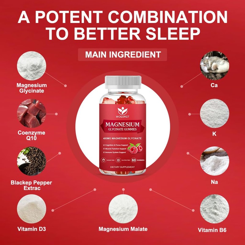 - Ultimate Benefits: Our Magnesium supplement gummies Contain Magnesium Glycinate 400mg and Magnesium L-Threonate 200mg. Which help to support cognitive health, enhance concentration, relaxation and improve sleep.
