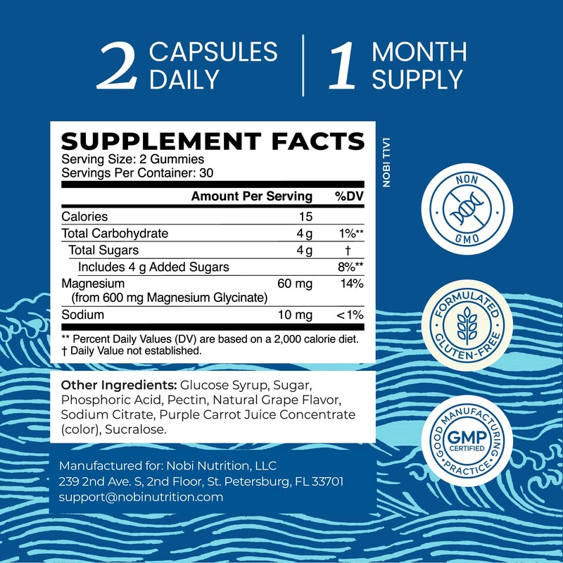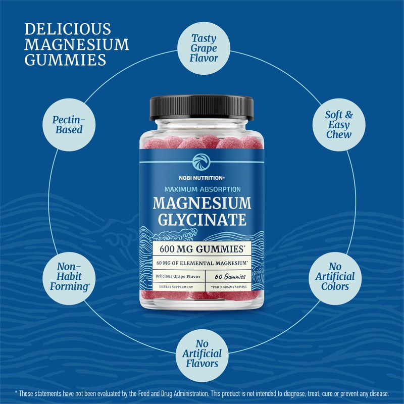- MADE THE RIGHT WAY: Nobi Nutrition’s Magnesium Gummies for adults & family are pectin-based, and do not contain artificial flavors or colors. All of our Magnesium chews are formulated Gluten-Free and Non-GMO, and made with the highest quality ingredients.