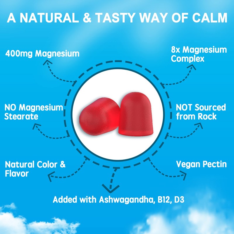 Magnesium Gummies 400mg | as 8 Forms of Magnesium Glycinate, Malate, Citrate, Taurate, Oxide, and More | with Ashwagandha Extract, D3 & B12 Supports for Calm, Zzz, Mood, Muscle Cramp - Vegan 120 Cts