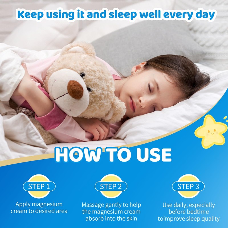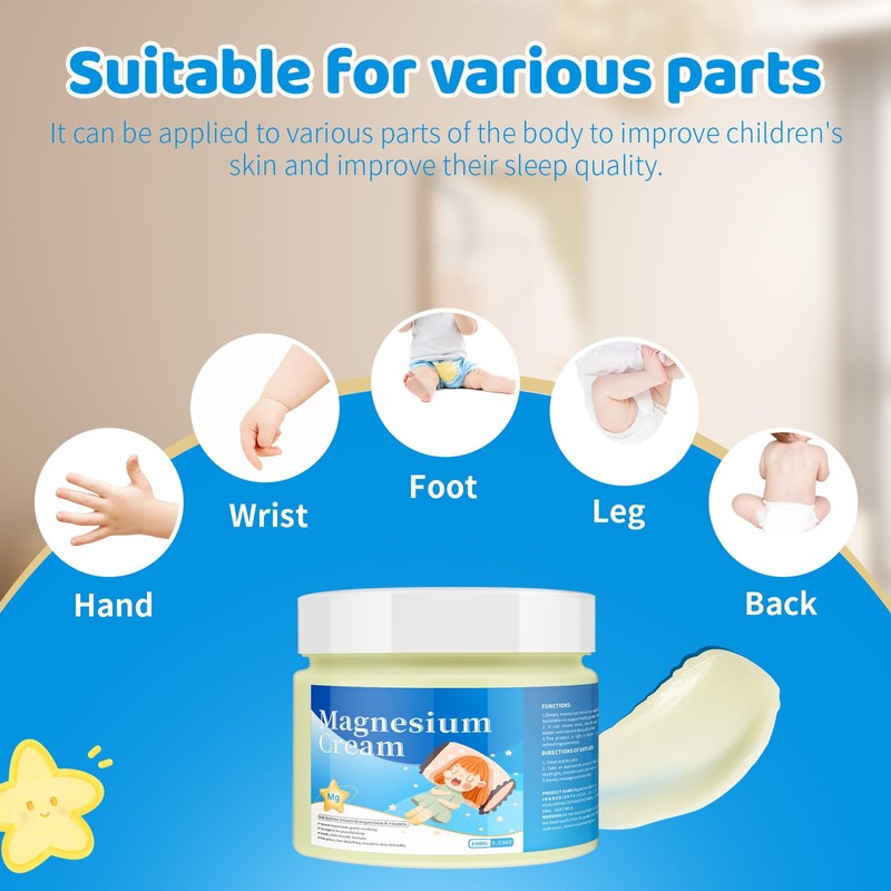 - Promotes Calmness & Restful Sleep:Designed to aid in relaxation, magnesium is known to support the body’s natural calm, which can make winding down for bedtime easier. Apply before sleep to help your little ones feel ready to rest.