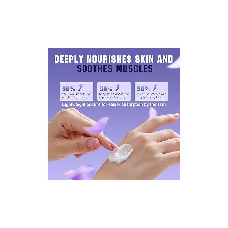 - 2.Lavender Lotion for Sleep: This magnesium lotion for sleep combines natural lavender essential oil with magnesium to soothe tense nerves and muscles. Magnesium cream for feet efficiently replenishes your skin, helping you fall asleep faster, reducing nighttime awakenings, and leaving you refreshed upon waking.