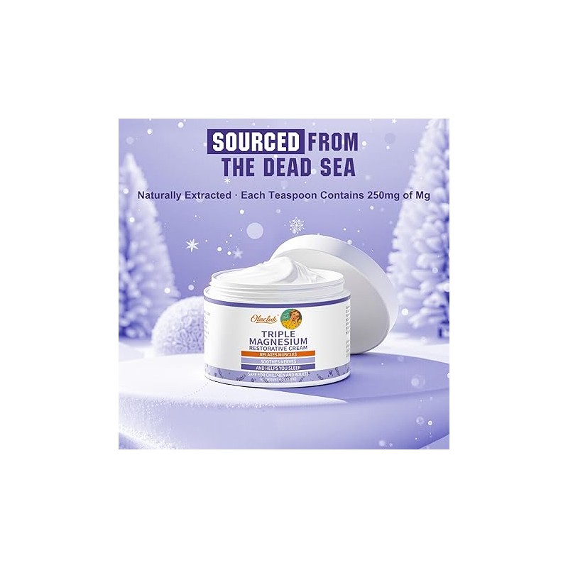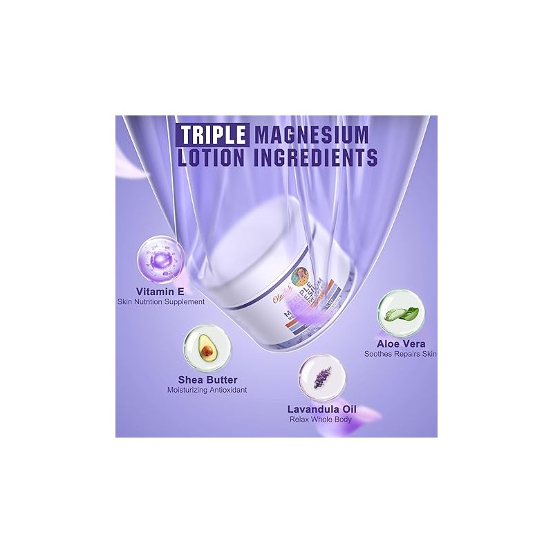 - 1. Triple Magnesium Lotion Formula: Our magnesium cream for sleep is the only cream rich in pure magnesium chloride, magnesium sulfate, and magnesium glycinate. This topical magnesium cream delivers 250mg of magnesium per teaspoon, making it an ideal natural and healthy choice for replenishing magnesium levels in the body.