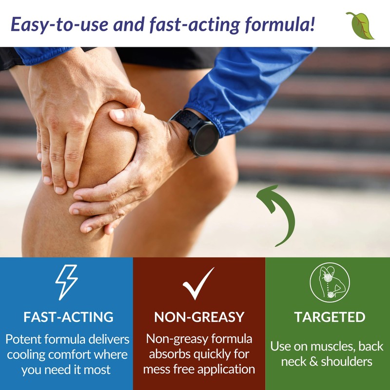 - Enjoy immediate pain relief with a soothing cooling effect that eases restlessness, tension, and discomfort.