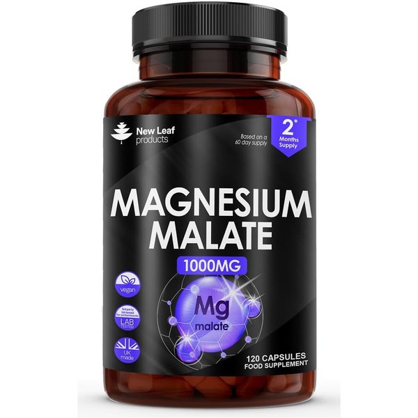 - ELEVATE YOUR WELLNESS JOURNEY WITH EASE - Discover the transformative power of New Leafs' Magnesium Malate Capsules, your essential ally in nutritional supplementation. This meticulously crafted formula offers a two-month treasure trove with 120 capsules, each serving packed with 1000mg of premium Magnesium Malate. Designed for seamless integration into your daily routine, these capsules ensure your body receives the comprehensive support it needs to thrive.