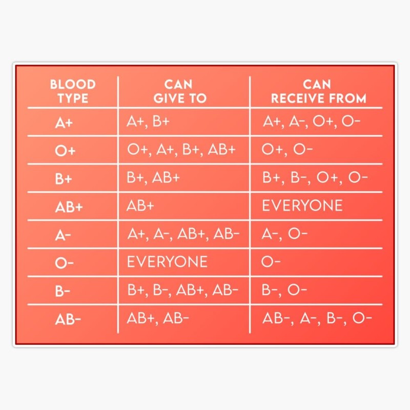 MAGNET Blood Type And Compatibility Chart Magnetic Vinyl Sticker Decal Magnet 5"
