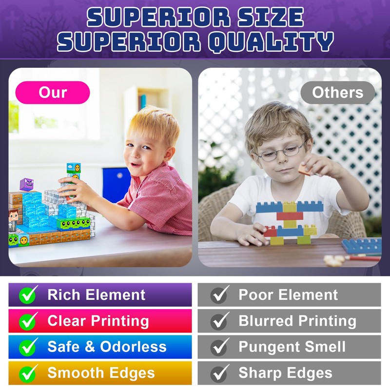 - ใ๐๐๐๐ & ๐ฟ๐ช๐ง๐๐๐ก๐ ๐๐๐ฉ๐๐ง๐๐๐ก๐จ, ๐๐๐๐๐ ๐ค๐ ๐๐๐ฃ๐ ๐๐ค๐ง ๐๐๐ง๐๐ฃ๐ฉ๐จใMagnet blocks use CPSIA/ASTM-certified ABS plastic (meets U.S. kids' safety standards) with smooth, burr-free rounded edges. A next-gen sealed magnetic system locks magnets in, preventing detachment/accidental ingestionโsolving parentsโ top worry. Upgraded to 1-inch size (better grip) and 8 strong magnets (enhanced stability), ensuring sturdier builds. Also compatible with same-size magnetic cubesโexpand collections easily, saving money.