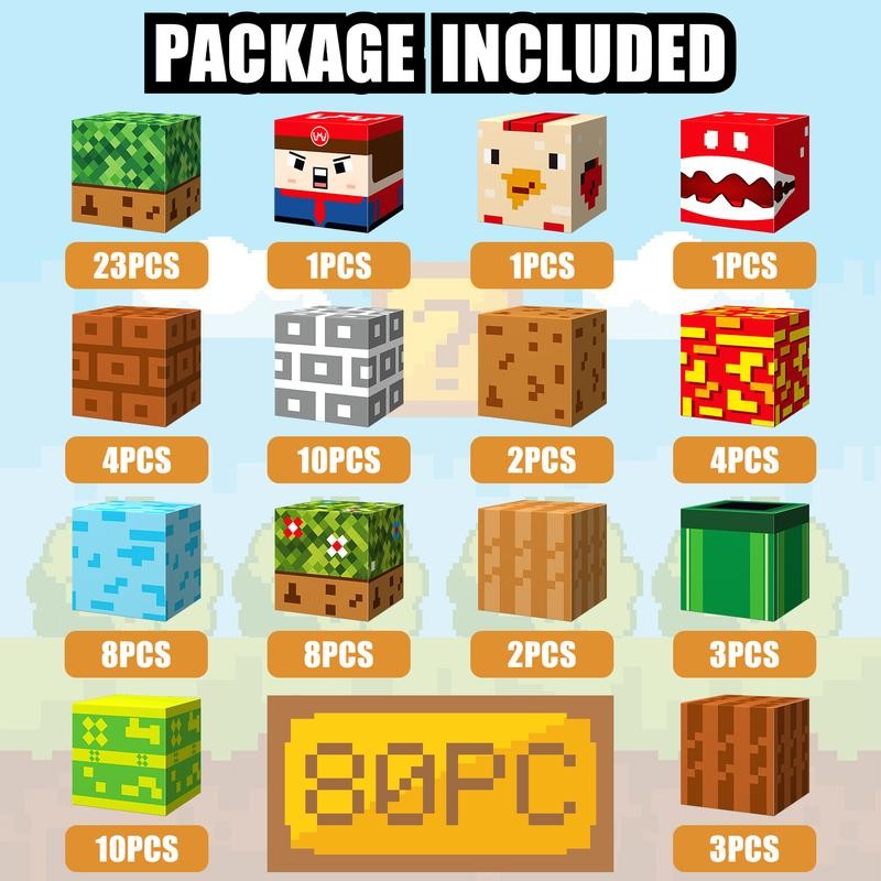 - Countless Assemble Possibilities: 80PCS Super building block sets feature a variety of patterns for kids ages 3+, sparking their curiosity, imagination and encouraging exploration. They offer endless creative possibilities in themed assembly. Block Size: 2x2x2 cm