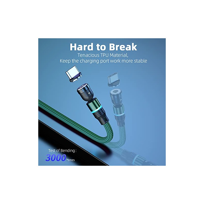 - 【540°Rotation Design】The upgrade magnetic charging cable allows magnet tip to rotate 360° and charging head to bend 180°, this convenient design allow you to find the right angle for every charging occasion, even if you twist the cable can also be charged normally.