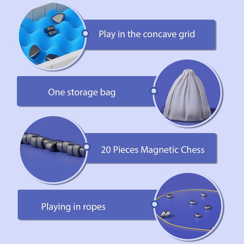 • 🥇【Magnetic Chess Game】: The magnetic chess board set, the chess with its own attraction, is a chess game. by placing the chess pieces in the correct position, the chess without being connected and attracted to each other. And then The goal of the chess board game is to put all the magnetic chess in your hand into the concave ropes of the sponge and prevent them from connecting and attracting each other, then you will win.