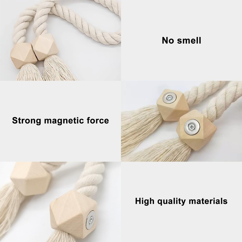 - High-Quality Materials: Crafted with upgraded nickel-plated magnets and handwoven premium polyester cotton rope, these curtain tiebacks are durable, resistant to wear and tear, and gentle on delicate curtains, including silk, ensuring long-lasting use without damage.