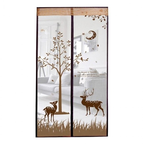 Magnetic Deer Pattern Mosquito Net for Summer Doors Brown 90x210