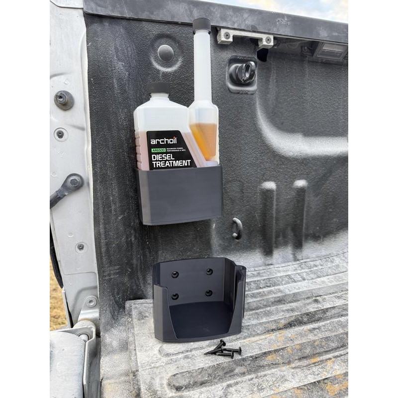Are you tired of leaking diesel additive all over your cab, bed, or toolbox? We've got you covered with this complete additive storage solution! Each option is custom CAD designed for the perfect fit. Proudly made in the USA!