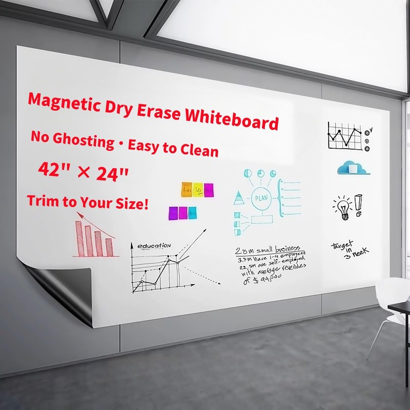 Magnetic Dry Erase Whiteboard 42"x24"- Self-Adhesive Flexible Wall Board Kit with 11 Markers, 6 Magnets, Magnetic Eraser & Holder - Ultra Smooth Writing,Effortless Clean for Office, Home, School