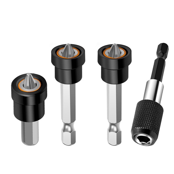 Magnetic Drywall Screw Setter - PH2 Bits for Plasterboard Sheetrock Screw 1/4" Hex Shank Positioning Bit Batch Head with 60 mm Extension Socket Drill Bit Holder (4pcs)