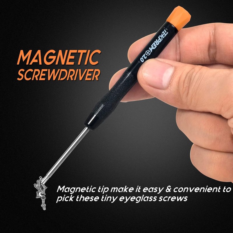 eBay Store New Arrivals Add to Favorite View Feedback Contact Magnetic Eyeglass Repair Tool Kit, Eye Glasses Repairing Screwdriver Set with Compatible Eyeglass Screws,Silicone Nose Pads,Tweezer,Small Screwdriver for Eyeglasses,Sunglasses and Nose Pads Description Package Dimensions 5.16 x 3.46 x 0.67 inches; 3.53 ounces [Comprehensive Glasses Repair Kit]: All-inclusive Eye Glasses Repair Kit, featuring 15 assorted screw types(No nuts included), 1 small Phillips and 1 flathead screwdrivers, 10 pairs of different-sized silicone nose pads, 1 keychain screwdriver, 1 curved precision tweezer, a superfine fiber glasses-specific cleaning cloth.All these tools are neatly arranged within a convenient and portable plastic case, ensuring effortless storage and easy access whenever needed. [Eyeglass Repair Kit with Screws]: There are two individual 10-grid plastic boxes containing 15 varieties of eyeglass screws and 10 pairs of silicone nose pads. All the screws are securely placed in their respective grids, ensuring they remain well-organized and minimizing the risk of accidental mixing or spillage. These eyeglass screws are commonly utilized for repairing eyeglass frames, hinges, decorations, frameless designs, and for replacing nose pad screws. [Magnetic Eyeglasses Screwdrivers]: This eyeglass tool kit comes equipped with two small magnetic screwdrivers: a 2.0mm flathead screwdriver and a 2.0mm Phillips screwdriver. The magnetic tips facilitate effortless retrieval of these tiny eyeglass screws, making the process exceptionally easy and convenient. [Screw in Silicone Nose Pieces]: This kit offers a selection of 5 different types, totaling 10 pairs of silicone and plastic nose pads. Among them, you'll find 3 varieties of silicone nose pads and 2 types of plastic nose pads, available in both golden and silver-grey colors. These diverse nose pads effectively cater to a wide range of needs for eyeglass nose pad replacements, ensuring ample choices for your convenience. [Essential Precision Tweezer]: The precision curved tweezer in this kit is an indispensable tool for effortlessly picking up tiny screws or nose pads during repairs. Its pointed and sharp design ensures ease in handling, making eyeglasses repair a smooth process. Product Description Upgraded 15 types of assorted eyeglass screws and appliactions -Connect nose pads and brackets, Screws diameters are 1.0, 1.1, 1.2mm Nose Pads Screws: 1.8x1.0x3.6 1.8x5.0 1.8x1.1x3.6 2.0x1.2x3.6 -Eyeglass parts installation & fixation Frame Screws: 2.5x1.4x2.5 2.5x1.4x3.0 2.5x1.4x3.5 2.5x1.4x4.0 2.5x1.4x5.0 2.5x1.4x6.0 2.5x1.4x7.0 2.5x1.4x8.0 -Connect eyeglass frame and legs,make it easy to fold and store. Hinge Screws: 2.5x1.4x4.0 2.5x1.4x5.0 2.5x1.4x6.0 2.5x1.4x7.0 2.5x1.4x8.0 2.5x1.6x4.0 2.5x1.6x5.0 3.0x1.7x5.0 -Decorative & Frameless Screws Frameless Screws: 2.0x1.2x3.6 3.0x1.7x5.0 2.5x1.4x6.0 2.5x1.4x7.0 2.5x1.4x8.0 Decorative screws: 2.5x1.4x2.5 2.5x1.4x3.0 2.5x1.4x3.5 Note: No nuts included in this kit and please kindly check and ensure the listed dimensions cover your need. A Must Have Tool for Glasses Repair -Precision Tweezer Included in this kit is a Precision Curved Tweezer designed to enhance your repair experience, setting it apart from other toolkits that provide only standard, tiny, or plastic tweezers. The precision curved tweezer included in this kit is an essential tool, facilitating the effortless handling of small screws or nose pads during repairs. It's crucial to ensure that the screw is completely loosened before utilizing the tweezer to extract it. To prevent damage to the screw hole, exercise caution and refrain from applying excessive force when removing the screws. Small handle, Light and Accurate Fit Eyeglass Repair Screwdriver Tired of disappointing eyeglass screwdrivers that fall short of expectations? Introducing our solution: the black P#00 Phillips screwdriver and 2.0mm flathead screwdriver, precisely crafted to perfectly match the majority of eyeglass screws. These magnetic, compact, and lightweight screwdrivers are easy to handle, boasting a flexible swivel cap for convenient screwing. With these tools, replacing your eyeglass nose pads becomes a breeze. They are also versatile enough to tackle other screws on your eyeglasses. It's crucial to note that these screwdrivers are intentionally small and light, measuring 4.61 inches in length and weighing only 0.21 ounces. This design is tailored for eyeglass repair, offering a more practical alternative to bulky-handled screwdrivers. Keychain Screwdriver 4 in 1 keychain eyeglass screwdriver with small phillips,flat and 2 hex socket tip for normal and frameless glasses repair. Magnetic Eyeglass Screwdriver The screwdrivers are magnetic to hold tiny eyeglass screws and make it convenient for eyeglass repairs. 10 Pairs of Eyeglass Nose Pads 5 Types of 2 Pairs each nose pads They're 3 types of silicone nose pads and 2 types of plastic nose pads in golden and sliver grey color. Complete and portable eyeglass repair kit This is TEKPREM new upgraded eyeglass repair tool kit with include everything you need for eyeglass repairs. All packed in a small plactic box with seperated grid. Small and light plactic box, easy to store. ABOUT US We offer the best prices around on high quality products. Our E-store includes media such as books, movies, music and games while offering electronics, toys, sporting apparel, clothing, tools, general home, garden items and more. SHIPPING We are always working hard to ensure your package arrives as soon as possible. Please understand that some factors like weather, high postal traffic, and the performance of shipping companies are outside of our control. We offer free shipping to the lower 48 states and ship within 2 business days of payment, usually sooner. We do not accept P.O. Boxes. Please provide a physical address. For shipping outside of the continental USA, we only use eBay's Global Shipping Program.The item is shipped to KY and then sent to the 