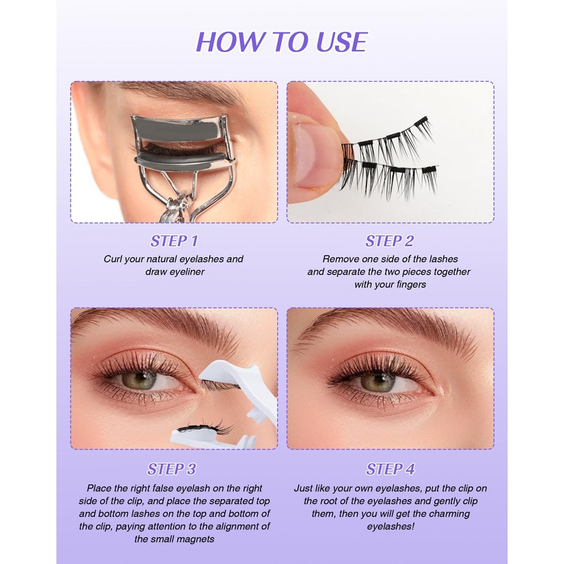 - Glue-free & Safe: Our magnetic eyelashes are latex-free and do not require makeup removal. They cause very little damage to the original natural eyelashes, making them ideal for people with sensitive eyes