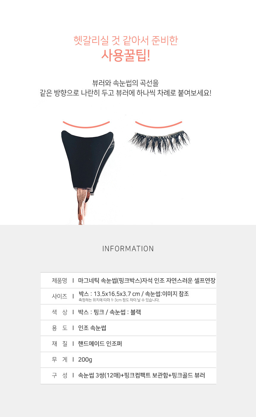 마그네틱 속눈썹(핑크박스) 인조 자연스러운 셀프연장 - 01인형스타일