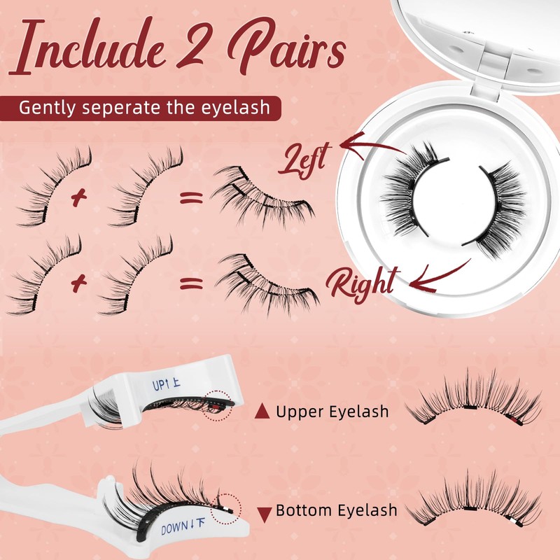 The magnetic eye lashes kit comes with instructions and an applicator, which is friendly to beginners and professionals. Once you get the hang of it, putting them on takes you 10 seconds. With magnetic lashes, you can wear beautiful eyelashes anytime and anywhere, making you more shining in everywhere.