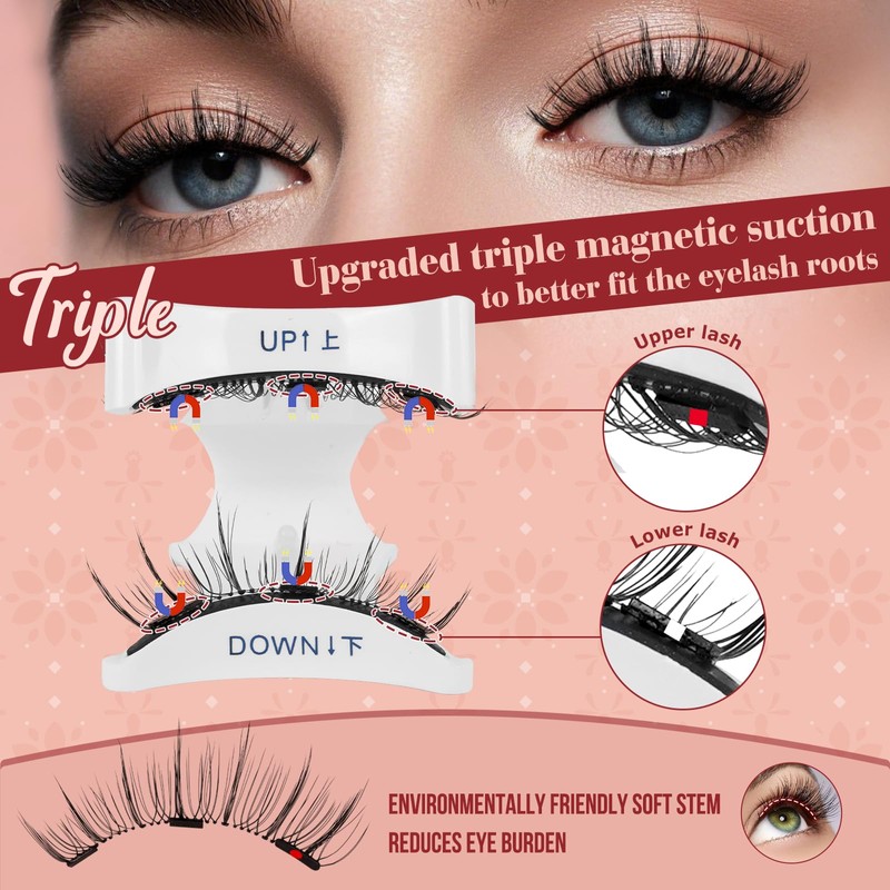 The magnetic eye lashes kit comes with instructions and an applicator, which is friendly to beginners and professionals. Once you get the hang of it, putting them on takes you 10 seconds. With magnetic lashes, you can wear beautiful eyelashes anytime and anywhere, making you more shining in everywhere.