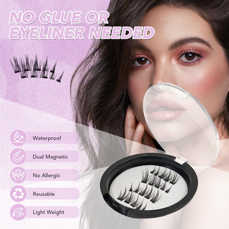 - No glue required magnetic eyelashes: YYAQZD magnetic eyelashes without glue, remover, eyeliner and mascara, friendly to sensitive skin or eyes. The newly improved design has 3 small magnets at the base of the eyelash that provide a stronger hold, perfect for quick touch-ups or all-day wear without discomfort.