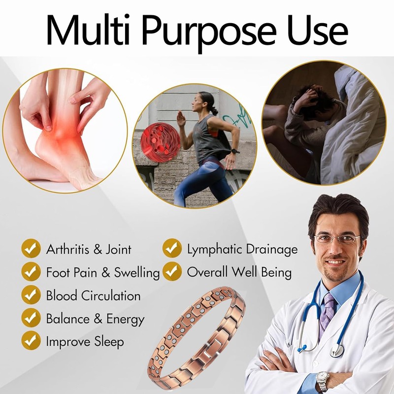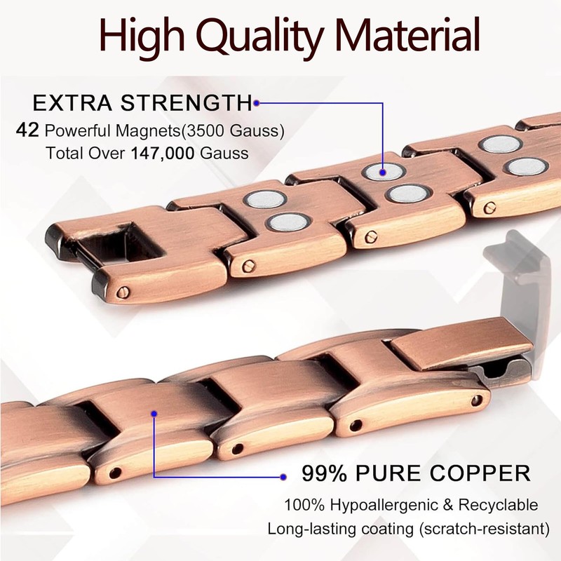 Pure Copper Anklet, Men Copper Magnetic Anklet, 9.84 in Copper Ankle Bracelet with 3500 Gauss Magnet, Pure Copper with Magnets for Feet & Ankles