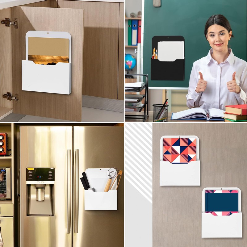 - The top of the white magnetic file holder is designed with round holes, you can place files or hang them up.