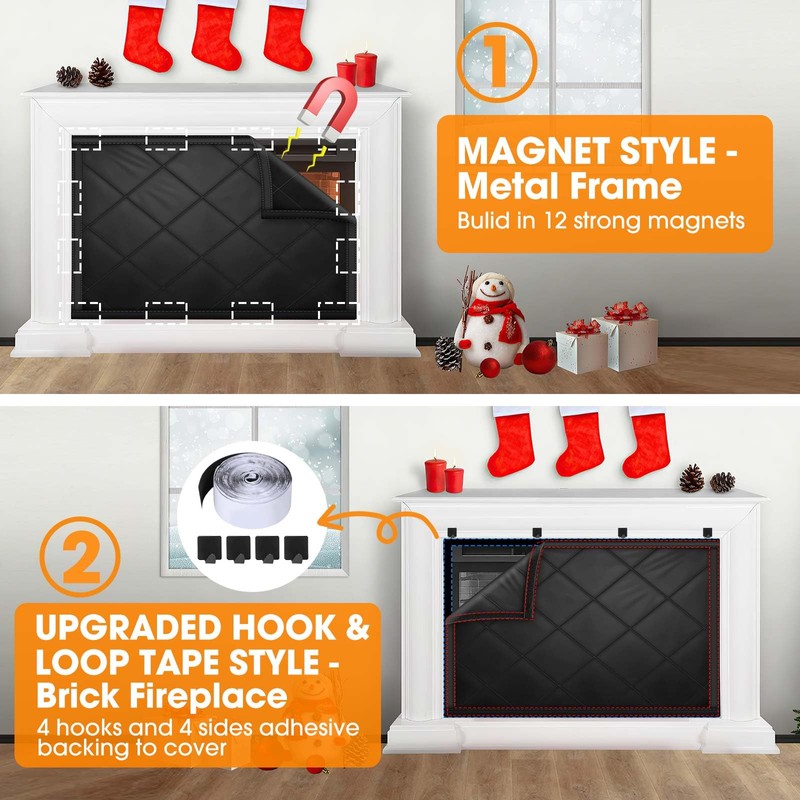 - ★【TWO STYLES & TWO COLORS & 3 SIZES TO CHOOSE】: 2 styles, 2 colors and 3 sizes fireplace draft stopper for you to choose, every style is equipped with 12 Pcs magnets or 4 sides hoop and loop tapes (full fireplace frame), please choose according to your fireplace style. If your fireplace is metal frame, please choose magnet style, if the fireplace is brick, please choose hoop and loop tapes for installation.