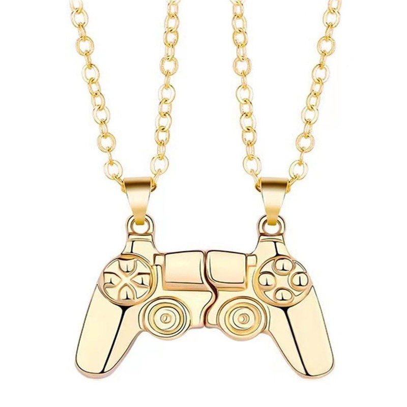 Magnetic Game Controller Necklace for Couple Matching Console Handle Pendant for Best Friends Friendship Valentine's Gifts Him and Her Lovers Jewelry-big gold