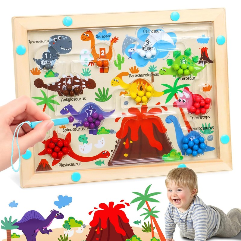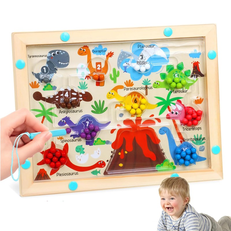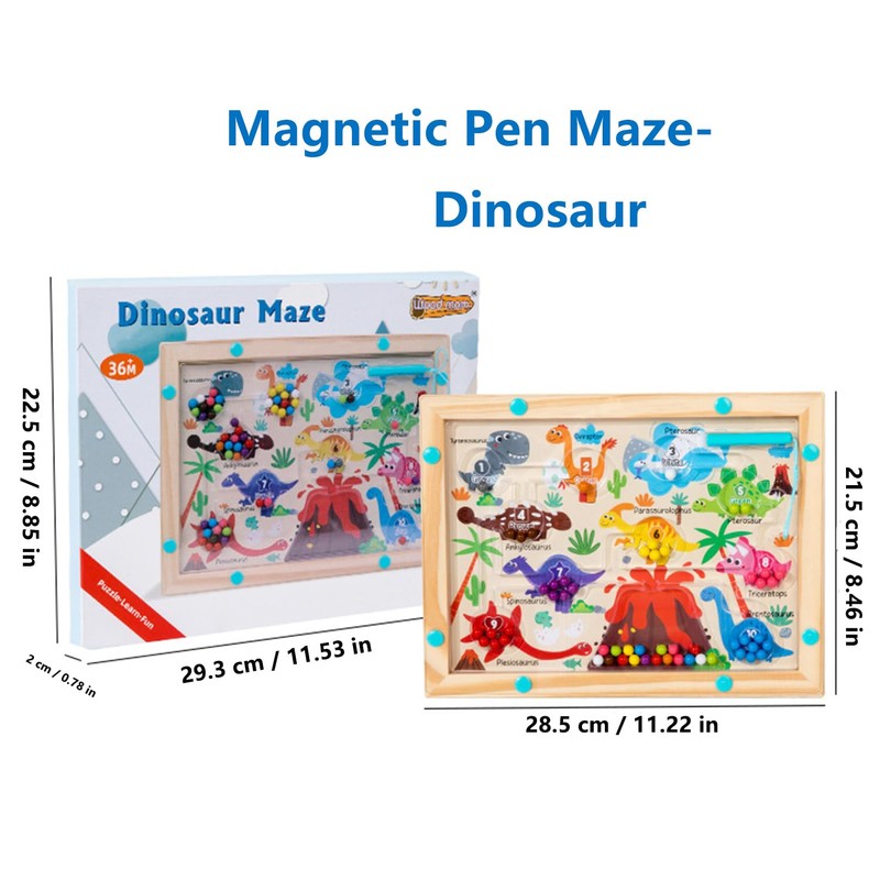 Magnetic Game Labyrinth Toy, Montessori Toy from 3 Years, Educational Motor Skills Toy, Educational Game Mathematics, Educational Game Mathematics for Toddlers, Boys, Girls (Dinosaurs)