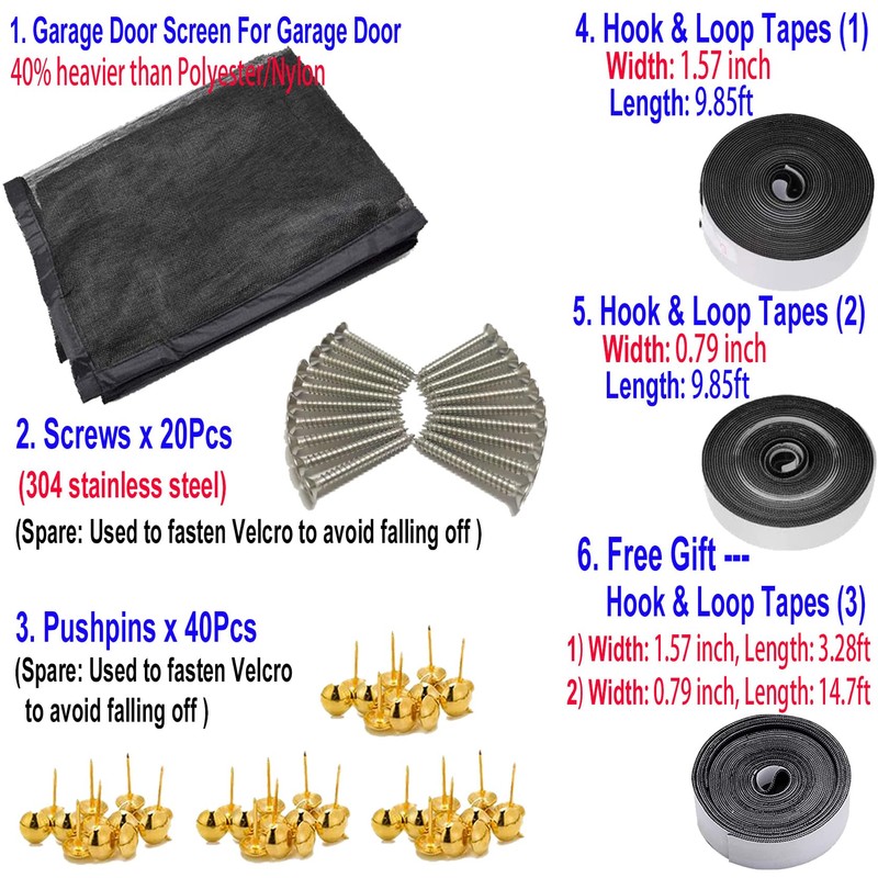 [IMPORTANT REMINDER] - Please carefully measure the size of your garage door opening at least twice before purchase. We have investigated most the garage door screens on the market and took fully consideration of their strengths and weaknesses in order to develop and launch a door screen with durability, practicability and reliability. Through our investigation, we finally upgraded our door screens from the material, magnetic strips, and storage function.
