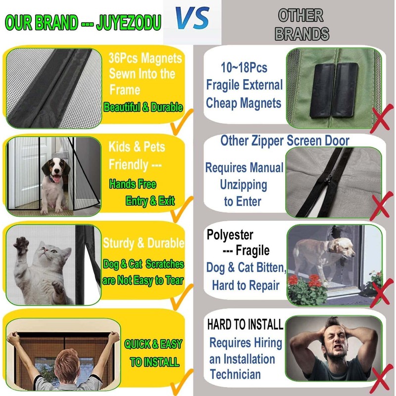 Uniquely equipped with stronger magnetism. Perform better in quick and tight closure. The door screen better magnetic closure can weaken the wind to blow directly into the garage, but still maintain good ventilation. Heavy-duty: