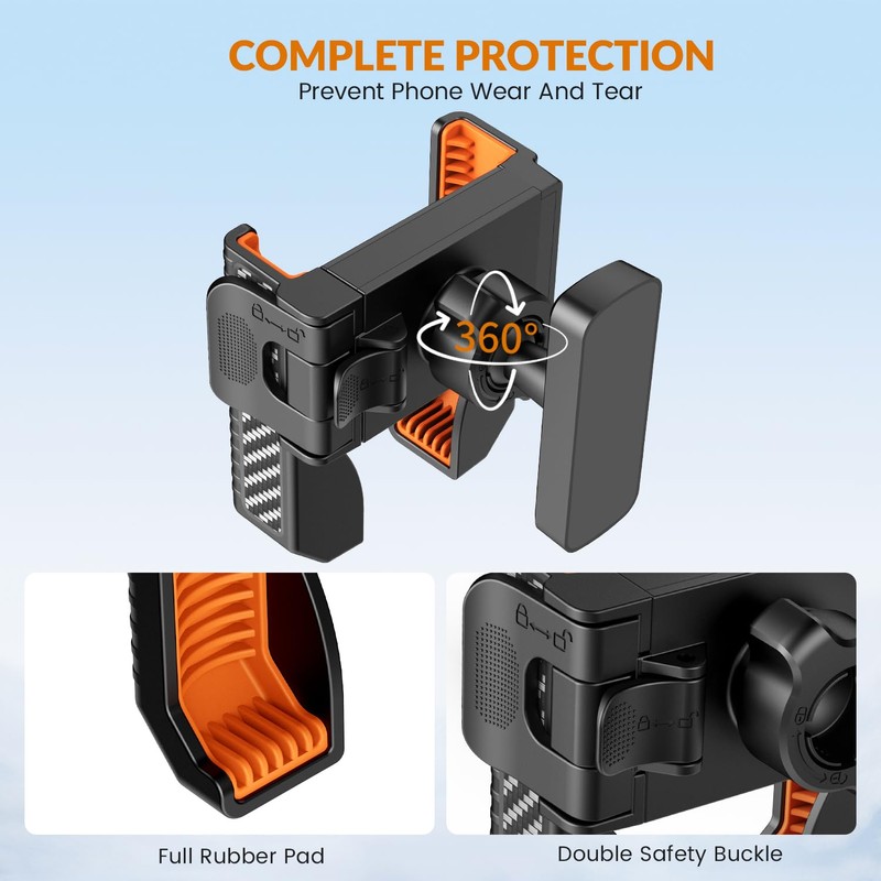 - ✅ 【Dual Safety Lock】-- Dual safety latch design allows easy width adjustment and phone locking without tools.No more side screws.The back buckle can adjust the width to hold your phone and the side buckle can lock and keep your phone in place.Locking back buckle and you don't need to adjust the width of the holder again next time.