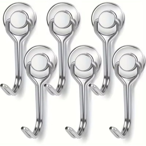 Magnetic Hooks with 180° Rotating Head, Strong Pull Power, 6-Pack, Silver, Metal