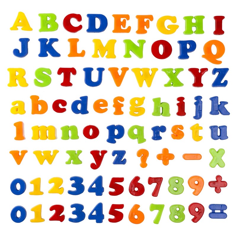 - 78 PCS Magnetic Letters:78 PCS magnetic letters and numbers, includes 26 uppercase letters(A-Z), 26 lowercase letters(a-z), 20 numbers (2 set of 1-10)and 6 math symbols total 78pcs,with five different colors ( green, blue, orange, red and yellow),Complete alphabet and numbers, preschool must have