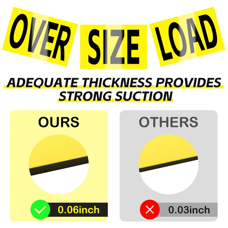 - 【High Contrast Matching】 The oversize load signs for trucks features a prominent yellow background with black text, which increases visibility while attracting the attention of passing drivers or pedestrians. Especially at intersections, the oversized cargo sign magnet is suitable for sticking to the rear of trucks, cars, and trailers, ensuring good safety.