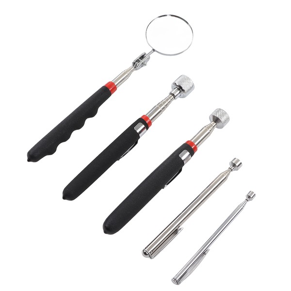 1、STRONG SUCTION: Magnetic pickup tool kit, with adjustable length, can easily adsorb various metal parts, and the maximum suction is 15lb, so there is no need to worry about things falling during the adsorption process. 2、MULTIPLE USAGES: The tool kit can be used to retrieve dropped jewelry, car keys, toys, sewing needles, metal fasteners, etc., with strong suction, which is suitable for narrow areas, and is convenient and practical. 3、EASY OPERATION: Ergonomically designed, these magnetic telescopic rods are comfortable to hold, easy to adjust the length according to needs, suitable for long term operation, efficient and labor saving. 4、ROUND MIRROR: Equipped with telescopic rod with a round inspection mirror, it can clearly display the corners that are difficult to detect, quickly pick up the dropped items, which is simple and convenient. 5、DURABLE MATERIAL: These tools are made of steel and rubber, with excellent magnets, they have high hardness, corrosion resistance and wear resistance, and can be used in various environments.