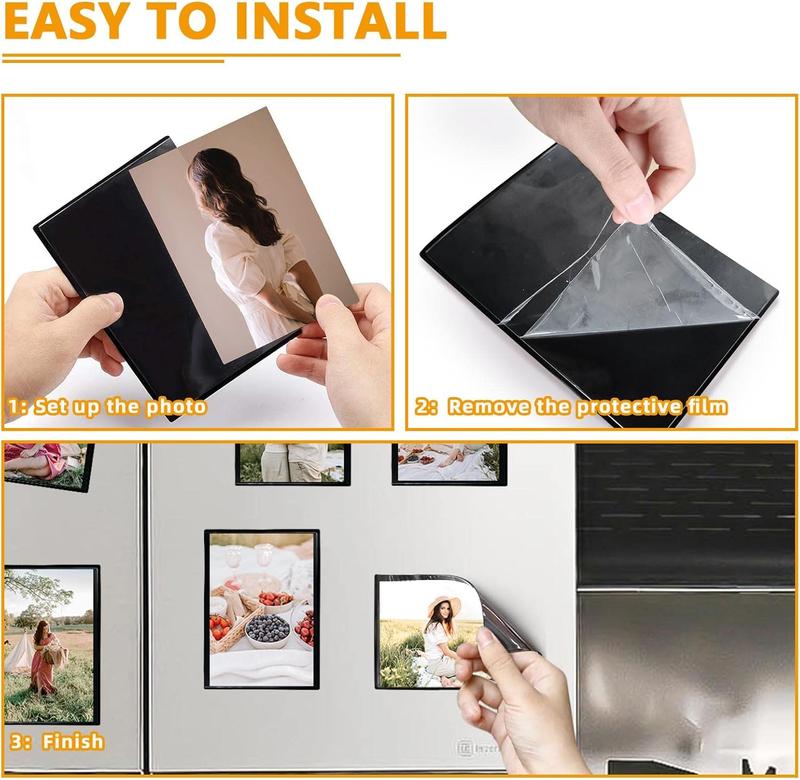 🖼️【Magnet Picture Frames for Fridge】The reusable magnetic frame has strong magnets on the , this entire magnetic is strong enough to hold pictures flat and securely, pictures never slide out of place horizontally or vertically displayed .