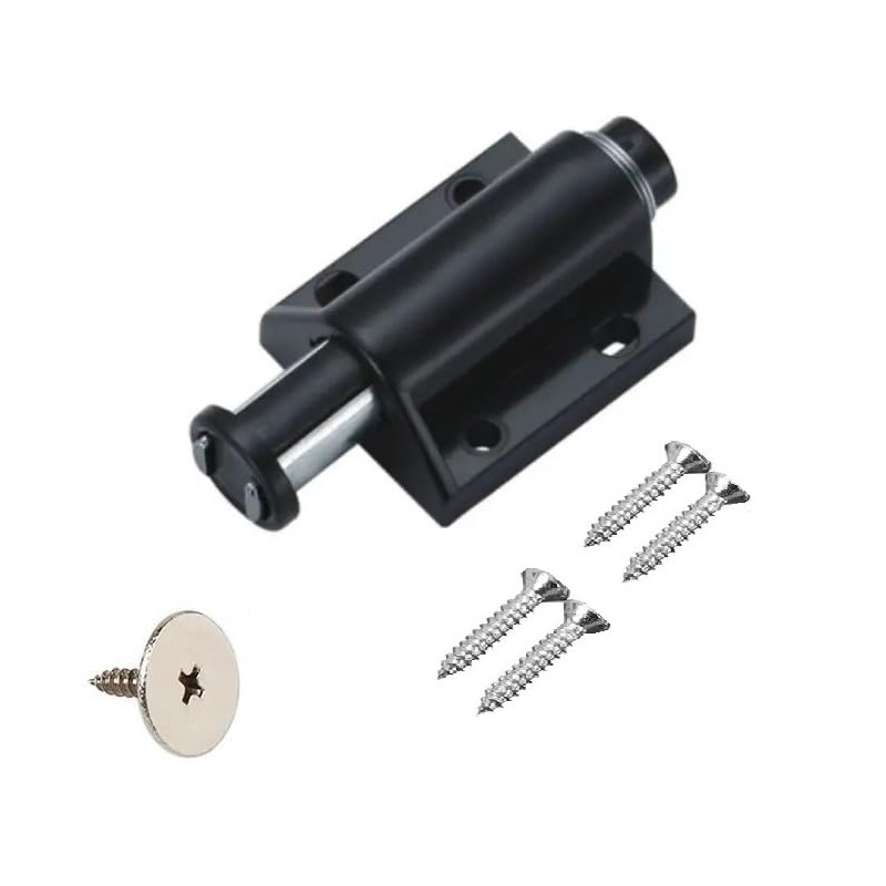 - Black Plastic Catch with Glavanized Steel Counterplate and Integrated Screw