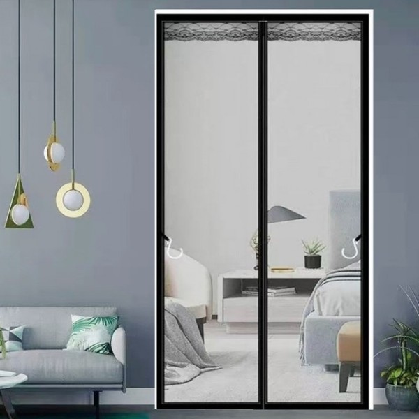 Magnetic Roll-Type Mosquito Net for Apartment Entrance Doors 03 Entrance Mosquito Net - Black - Small