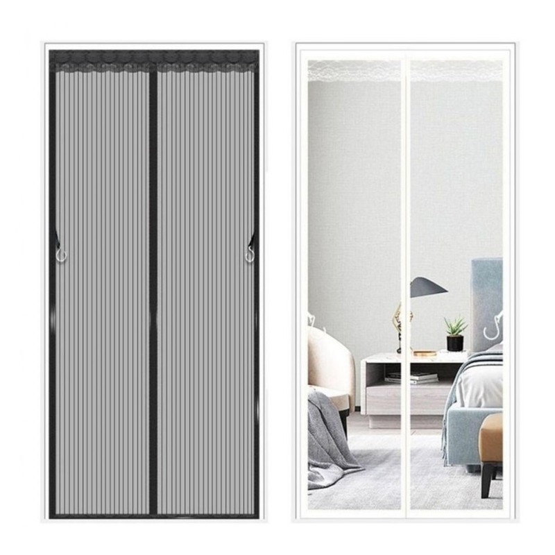 Magnetic Screen Door for Entryway - No-Drill, Hook & Loop, Silent Operation - 100x210cm Black White Black