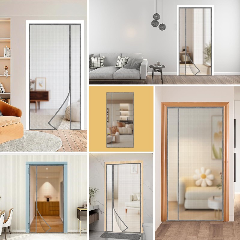 - 【Easy to Install】This silver grey magnetic screen door package included a roll of magic tape, a pack of push pins, and an instruction manual.The doorway door curtain is easy to install. simply peel the adhesive backing off, apply it to the dry door frame. the push pins ensure the screen door is installed more stable.