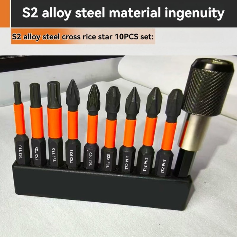 Magnetic Screwdriver Drill Bit Set 10PCS, Impact Torx Phillips PoziDriv Screwdriver Bits S2 Steel 1/4 Hex Shank with 60 mm Extension Quick Release Chunk.