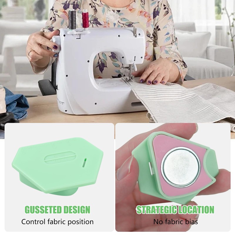 - Magnetic Seam Guide for Sewing Machine: The magnetic seam guide is an essential tool for sewing machine enthusiasts, especially for beginners working with curved seams. This small-angle magnetic seam guide utilizes strong magnets to ensure precise sewing positioning, effectively preventing any displacement or movement while sewing thick materials and long, straight seams. Installation and removal are quick and easy, requiring no tools or screws.