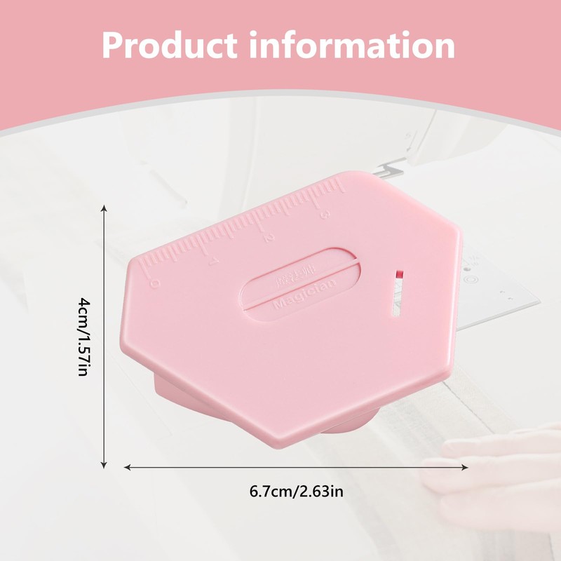 Magnetic Seam Guide for Sewing Machine, Upgraded Polygonal Hemmer Guide with Scale, Multifunctional Universal Sewing Accessories for Magnetic Seam Guide (Pink)